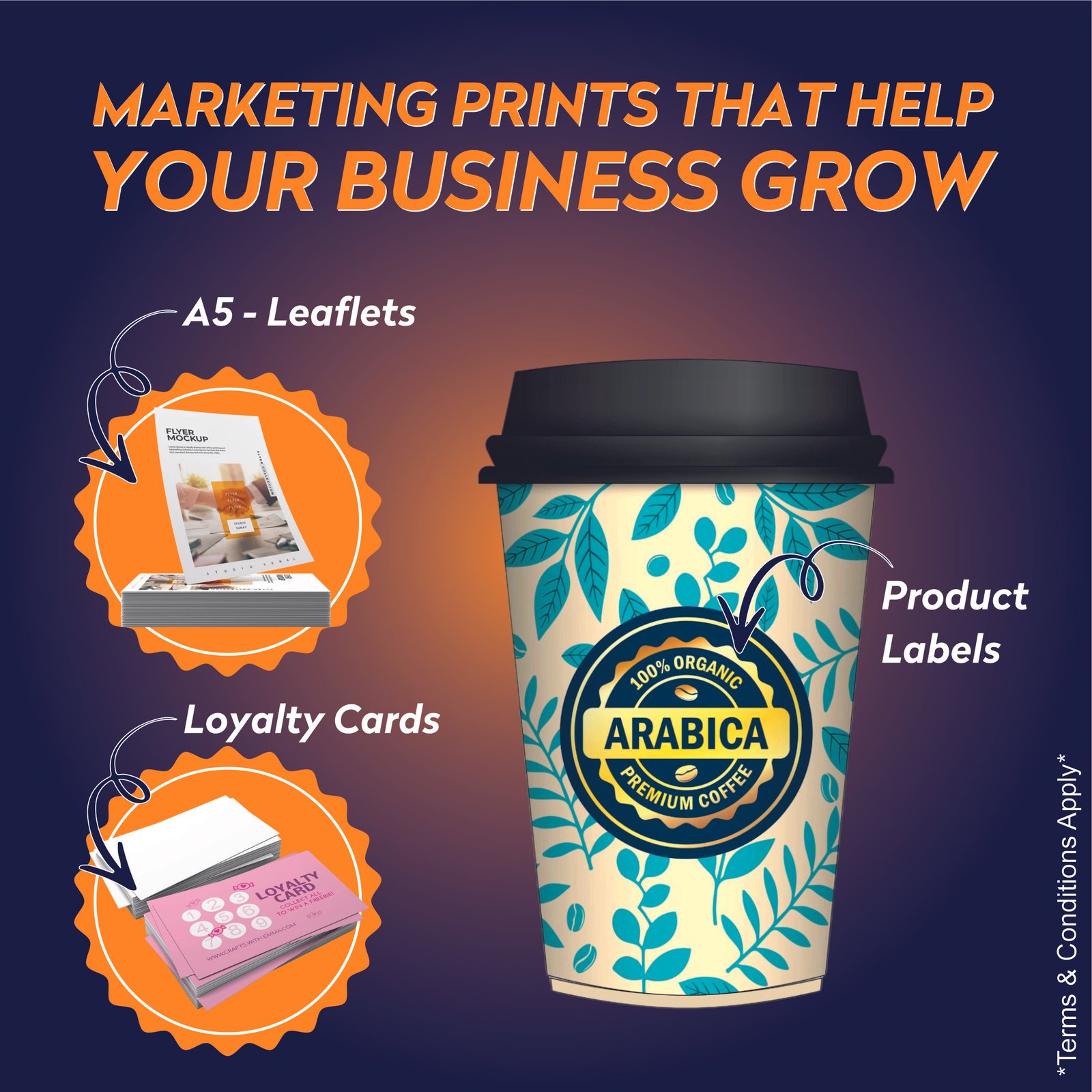 Take your growing business to the next level with our Scale Up Deal, designed to help you expand your reach and deepen customer engagement. This comprehensive print package equips you with everything you need to promote your products and reward loyal customers effectively.